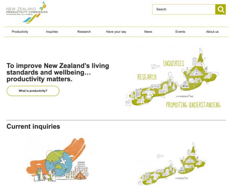 NZ Productivity Commission provides advice to the Government on improving productivity in a way that is directed to supporting the overall well-being of New Zealanders. I worked with Wellington agency Mark Creative to redevelop this government site.